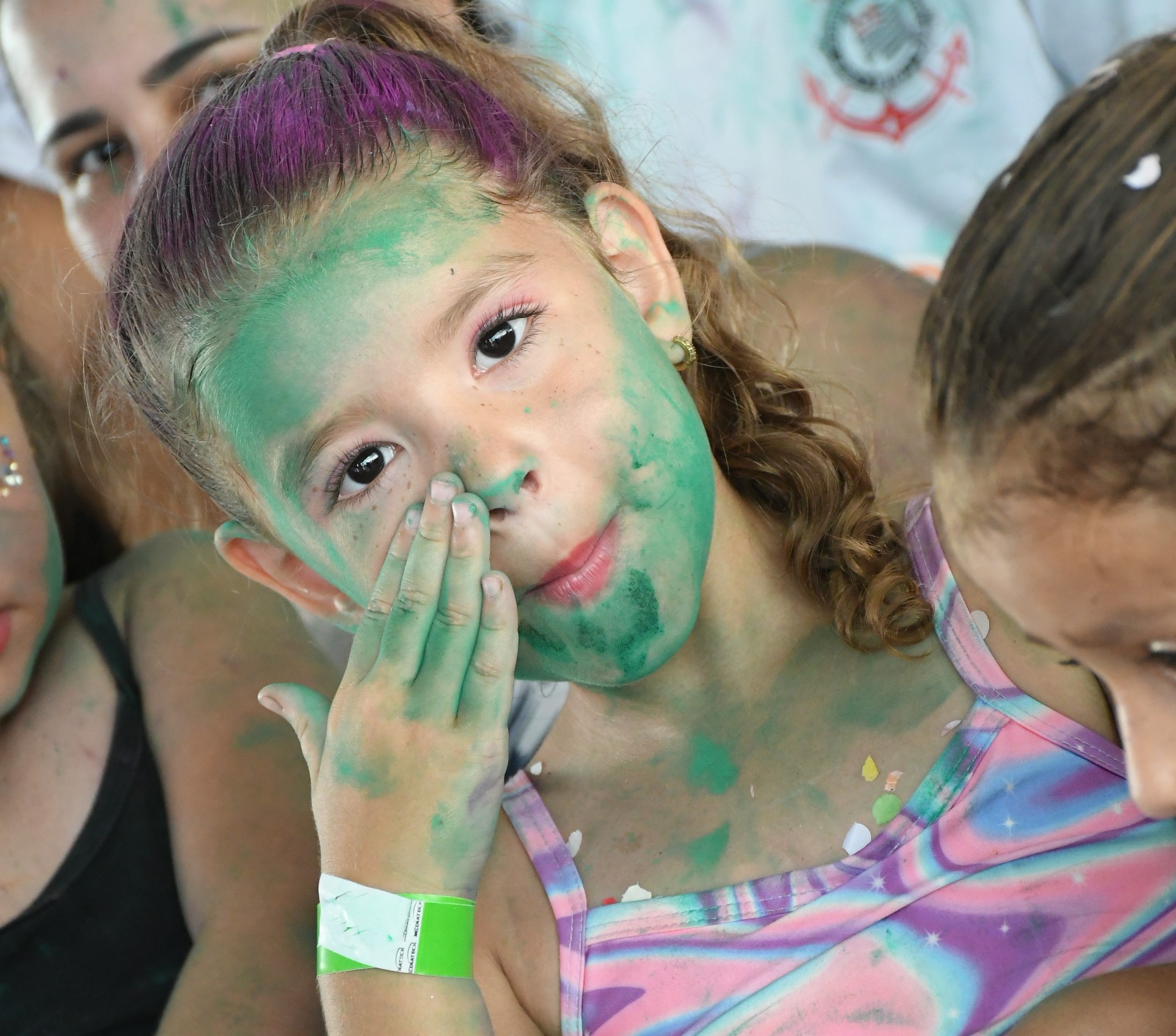 Fiquem atentos: a distribuição de pó colorido será às 18h. O pó deverá ser usado apenas na área delimitada no evento, pelas crianças participantes. O pó colorido da Marca Zim (contém amido de milho – 99%, corantes alimentícios -0,9% para dar cor e conservante alimentar -0,1%, sendo um produto não tóxico, lavável e biodegradável). Crianças com restrição a amido de milho ou com alergias ou sensibilidades na pele não podem participar. Não é permitida a aplicação de pó colorido no rosto; não é permitido sair da área do evento com pó para jogar em terceiros; o uso de celular dentro da área do pó não é permitido (risco de dano) e recomenda-se vir com roupas que possam ser sujas.