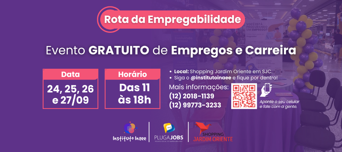 O Shopping Jardim Oriente receberá mais uma edição da Feira da Empregabilidade, desta vez com boa parte para contratação efetiva. No total são 1.500 vagas para várias áreas. A 2ª Feira de Empregabilidade é uma iniciativa gratuita e de conexão entre empregador e empregado na região. Será realizada a partir desta quarta –feira, de 24 a 27 de setembro, das 11h às 18h, no corredor da loja Sumirê. A ação é uma parceria com o Instituto INAEE – Instituto Nacional de Apoio ao Empreendedorismo e Empregabilidade.